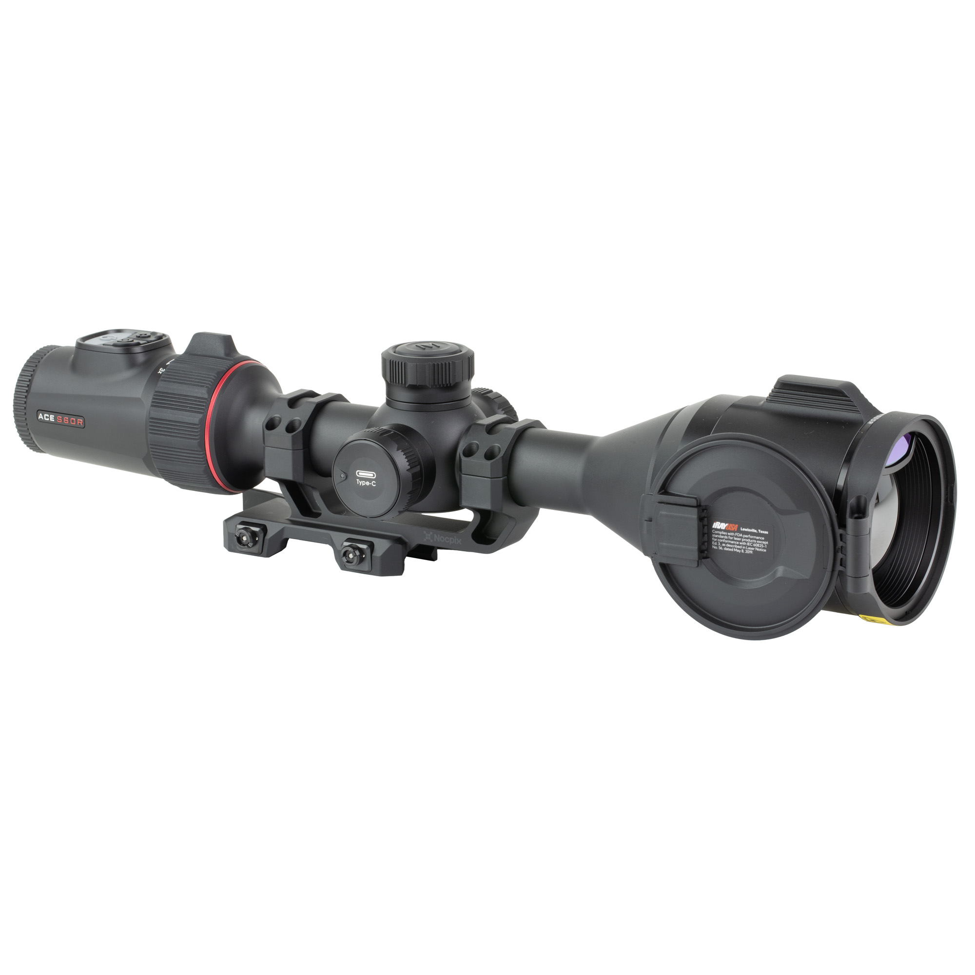The ACE is compatible with bolt action or semi-automatic rifles using standard 30mm mounts and rings. The combination of an internal USB-C charging battery and a removable 18650 style rechargeable battery allows users to hot-swap batteries in the field to run indefinitely. An ocular magnifier provides optical magnification of the 2560x2560 round AMOLED display inside the eyepiece. The Vision+ system pairs this high-resolution display with a 15mK NETD sensor for a detailed and precise image. The 1,300-yard capable laser rangefinder on the ACE is integrated directly into the 50mm germanium objective lens. In addition to streamlining the body design and reducing bulk, this allows for improved horizontal alignment of the infrared laser with the viewing system.