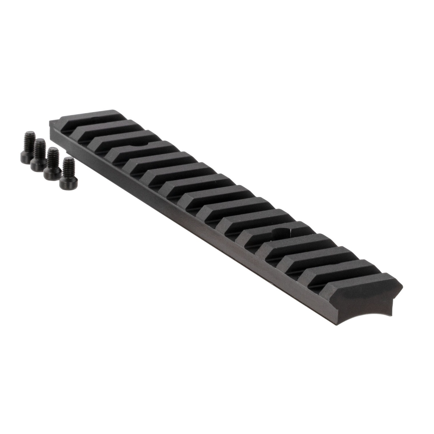 One-piece Picatinny scope base is designed for use with short action Ruger American Rifles. The rail is engineered specifically to fit the American Rifle factory scope mount holes on the gun’s receiver. MIL-STD Picatinny slot-and-rail spacing accepts Picatinny or Weaver scope rings. One-piece design is precision-machined from billet aluminum. Base is 6” long with a hardcoat anodized finish and includes (4) TORX mounting screws and a T-10 wrench. Made in the USA. Genuine Ruger Factory Accessory.