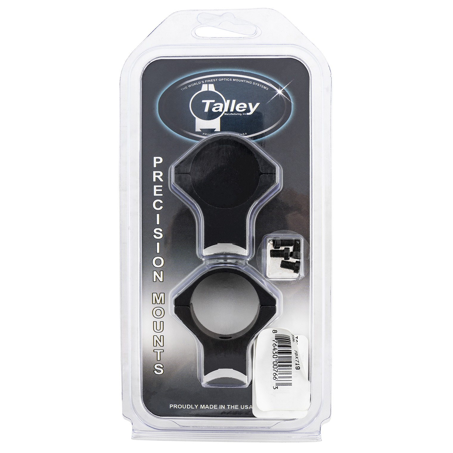 Made in America, these Savage Scope Mounts w/8-40 Screws made by Talley Manufacturing offer a unique and simplified one-piece scope ring and base solution for Savage rifles with round receivers, the AccuTrigger system and 8-40 screws (the bigger screws). This simplified mounting system eliminates the possibility of an out of alignment interface or loose connection between the ring and base of traditional two-piece designs. Ultimately this provides more strength and durability than rival steel rings and bases, but with a lighter overall weight. Fully CNC machined from lightweight aircraft-grade aluminum to the industries tightest tolerances, this rigid scope mounting platform requires no lapping and is ready to go out of the box. These rings will fit short or long actions but are recommended for long actions.