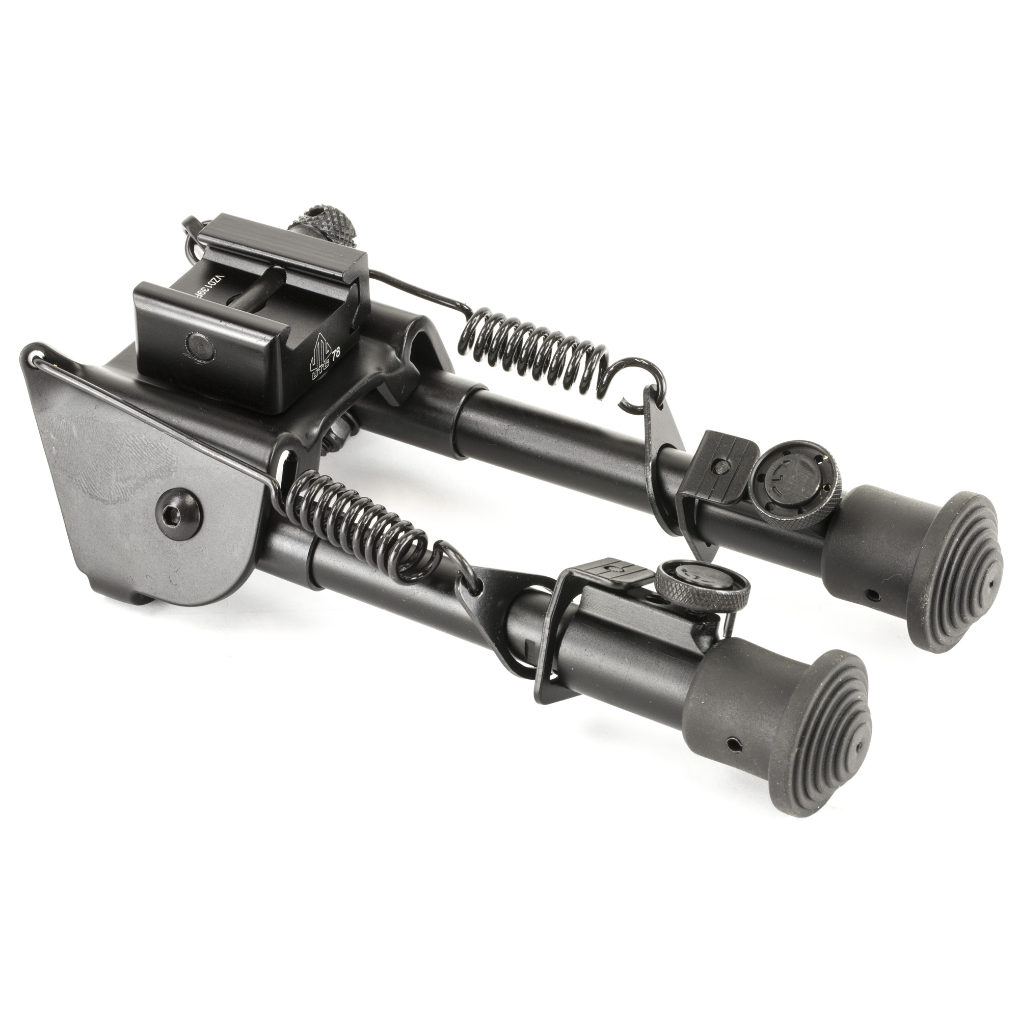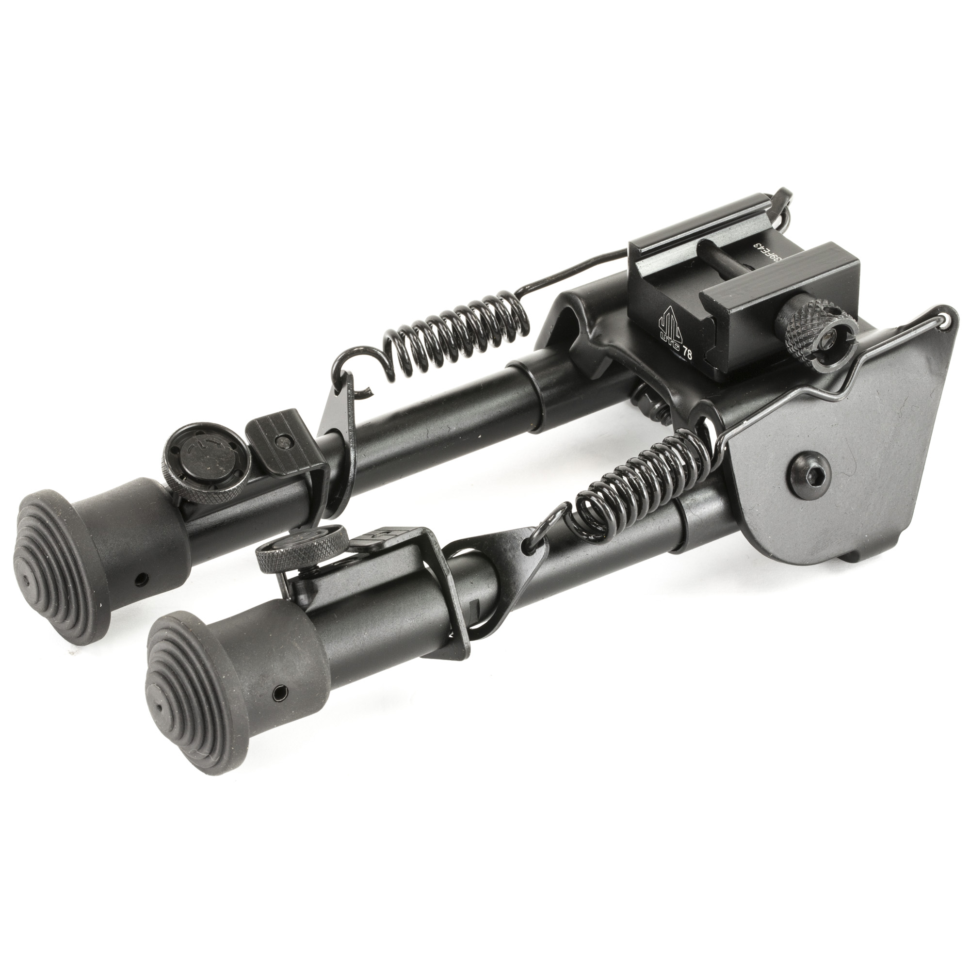 Leapers Tactical OP Bipod is made of durable aluminum with rubber feet and steel stop platform. It has fully adjustable legs with posi-lock wheel and quick retraction button.