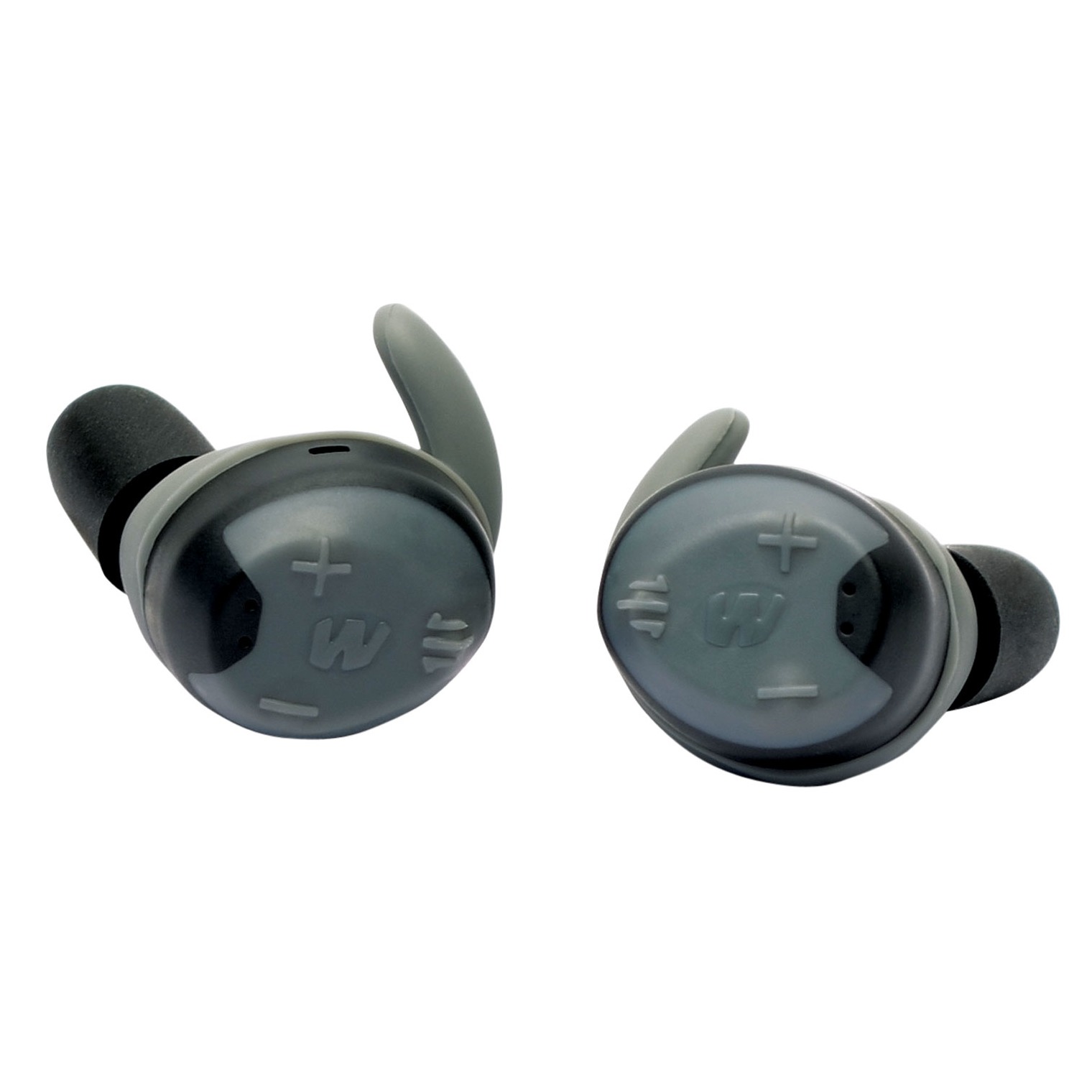 Walker’s Game Ear Silencer 2.0 wireless electronic earbuds with a SAC (sound activated compression) hearing protection. The earbuds features stable left/right earbud connection; touch button controls; dynamic wind noise reduction; variable gunshot compression; voice prompts and auto shut off. Includes rechargeable lithium battery with a rechargeable lithium battery in dock; micro USB cable and three sizes of Sure-Lock sizing fins and foam tips.