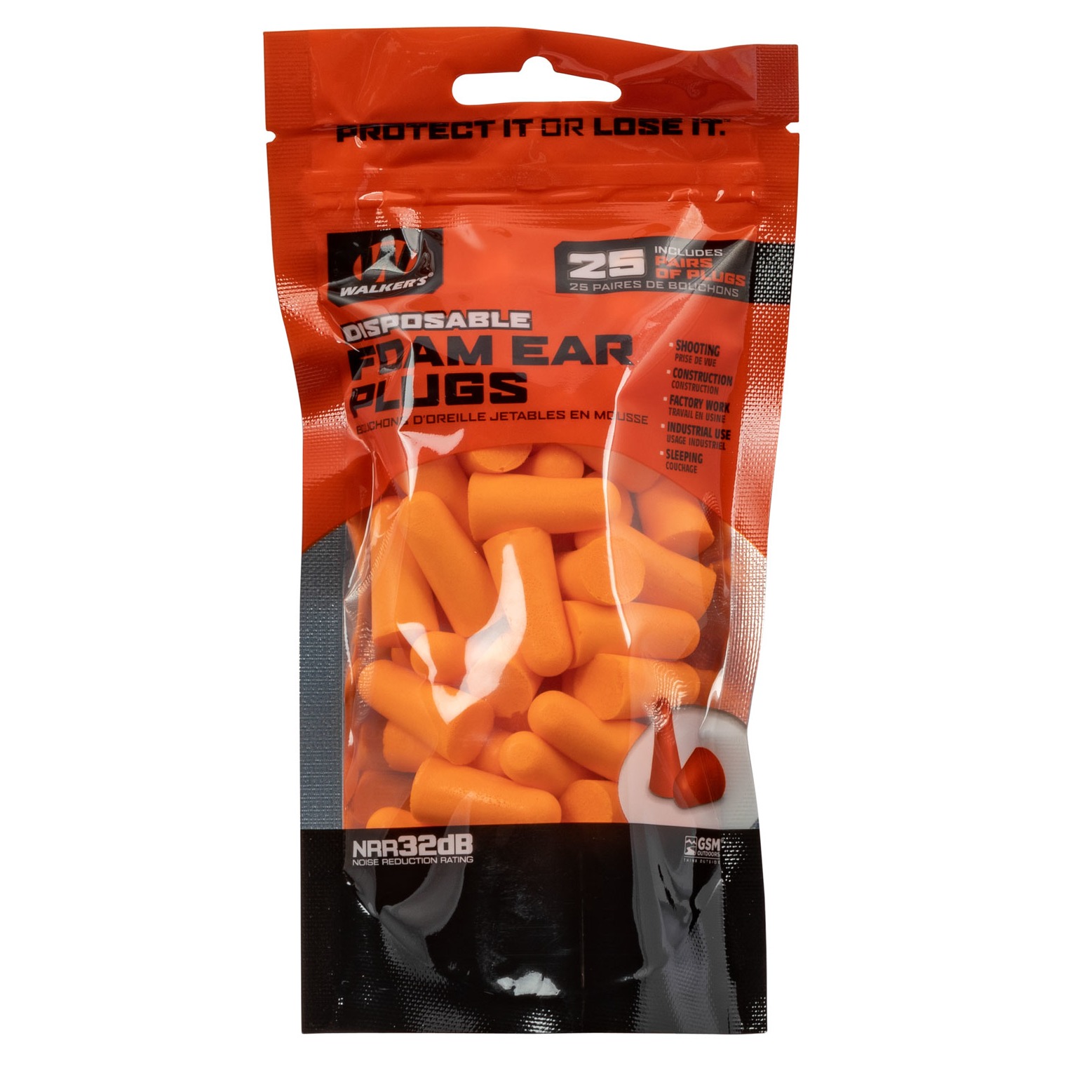 Walker’s GWPFP25BAG Foam Ear Plugs Foam 32 dB In The Ear Orange Adult 25 Pair