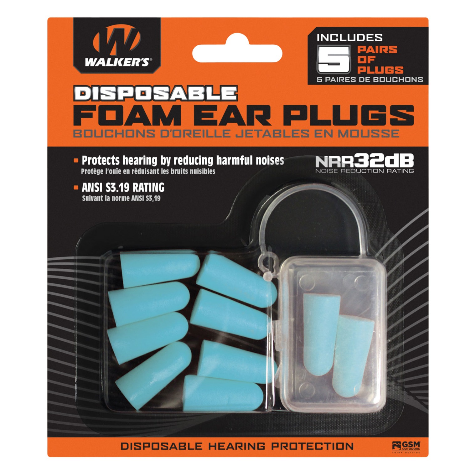 These 5 packs of foam ear plug from Walkers, conforms to you the shape of your ear and features a NRR of 32dB.