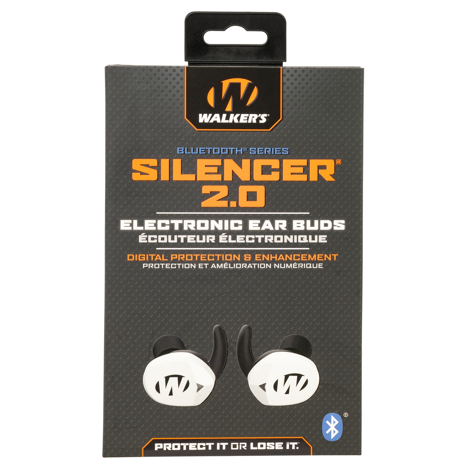 The Silencer BT 2.0 Electronic Ear Buds features Bluetooth 5.0 which helps improve battery life and wide connection range. It has touch button controls, SAC (Sound Activated Compression), voice prompts, and auto shut off. Included is a USB Charging Dock with integrated rechargeable lithium battery, 3 sizes of Sure-Lock fins and foam tips (SM/MD/LG), cleaning brush, and Micro USB cable.