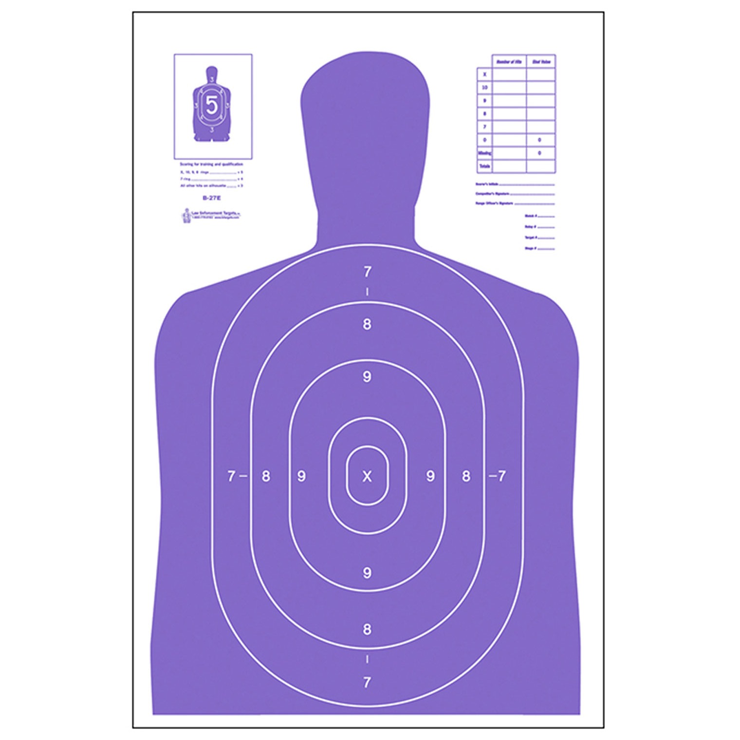 B-27E-PR High visibility fluorescent purple target. Great for indoor ranges. Size: 23” x 35”.