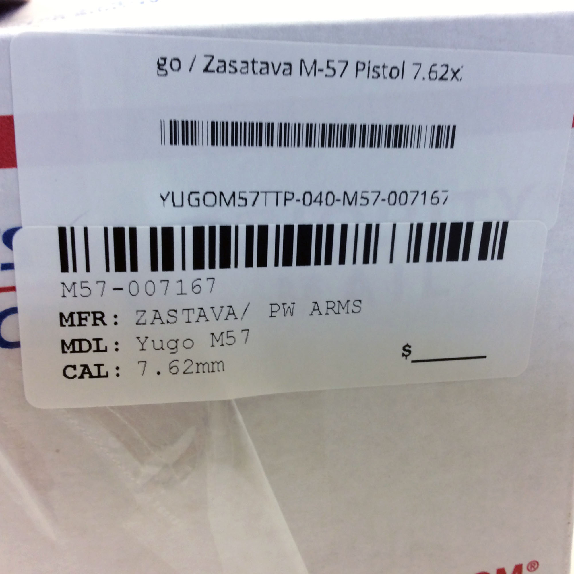 Yugo / Zasatava M-57 Pistol 7.62x25 M57 Yugo (1) 9rnd magazine C&R Eligible